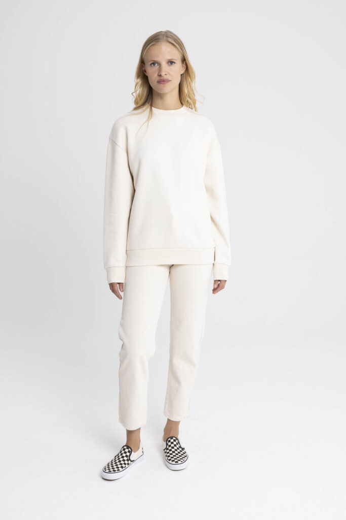 A relaxed unisex sweatshirt with drop shoulders and a slightly cropped length for iconic style. Minimalist detailing meets timeless design. Sustainably crafted from organic and recycled fibers with a 100% cotton face for a clean, elevated finish.